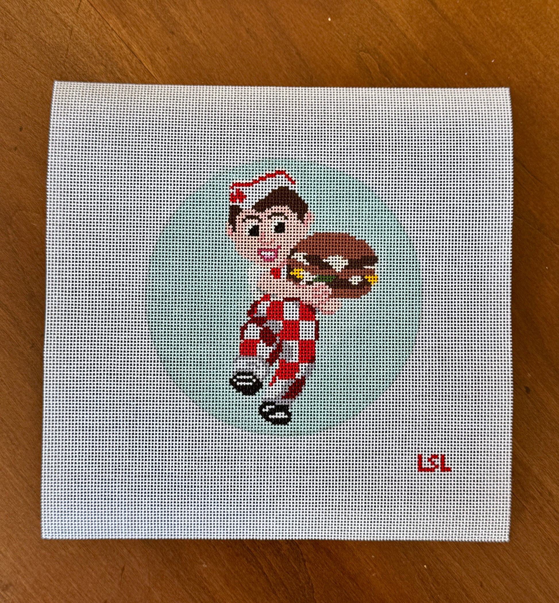 Hand-painted design on 18 count mesh canvas.