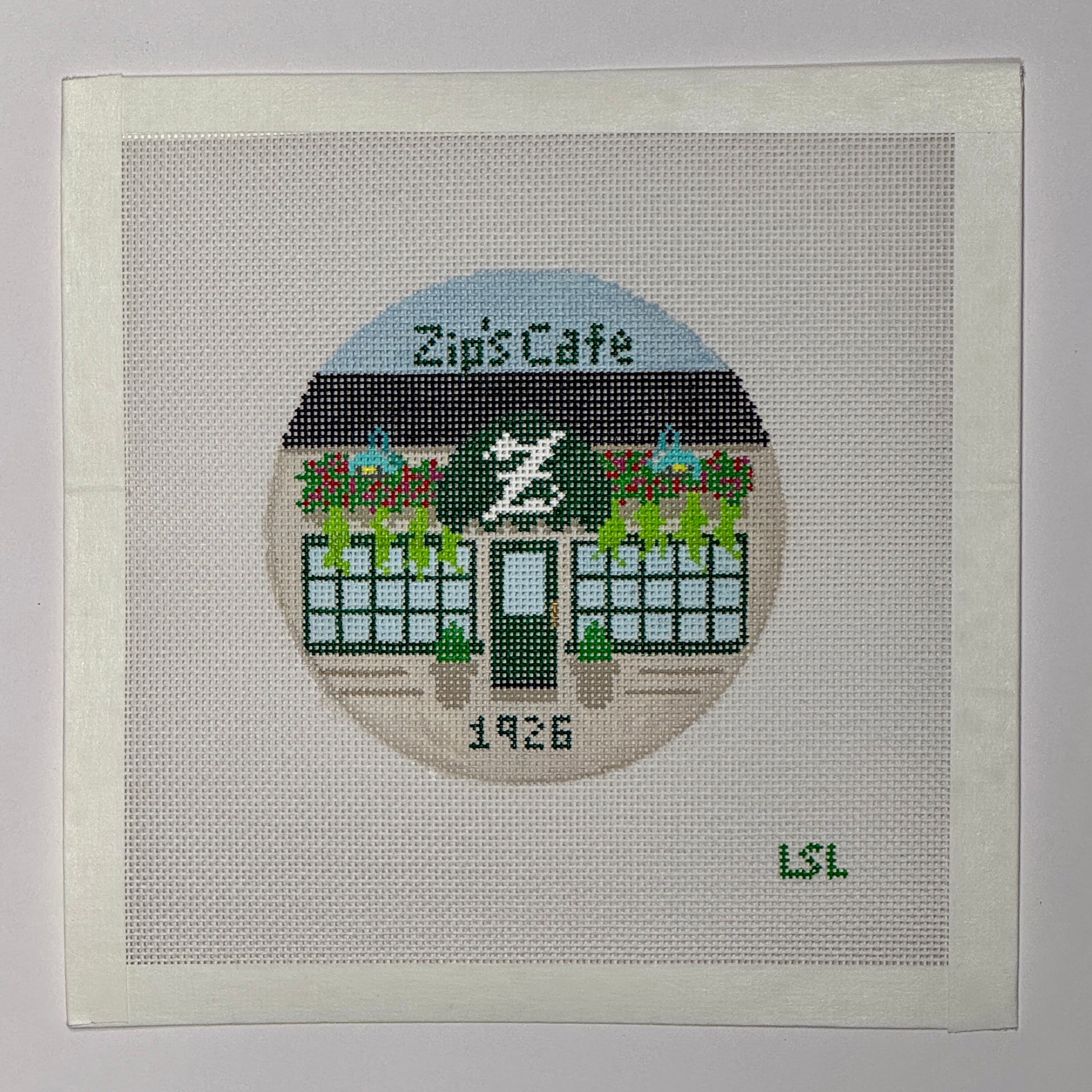 Hand-painted design on 18 count mesh canvas.